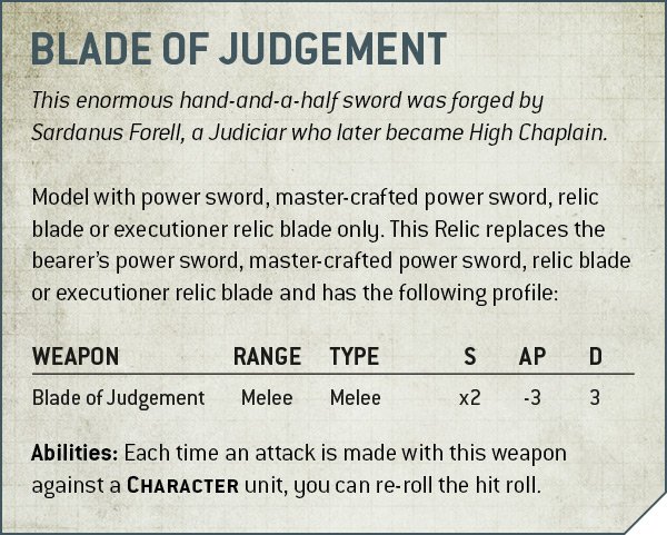 On the whole these are cool and it’s great to see a lot of things return that were left out of the Matched Play relics. If there’s a downside here it’s that Space Wolves didn’t get the same treatment, losing a bunch of Relics that would have been cool to have in Crusade as options.