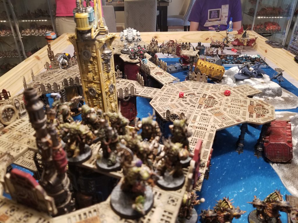 For this game SD47 and Condit each had their own pool of 9 CP (6 each plus 3 each for our Crusade Points differential), and they'd share any CP generated in a common pool every Command phase, and they'd take shared turns.