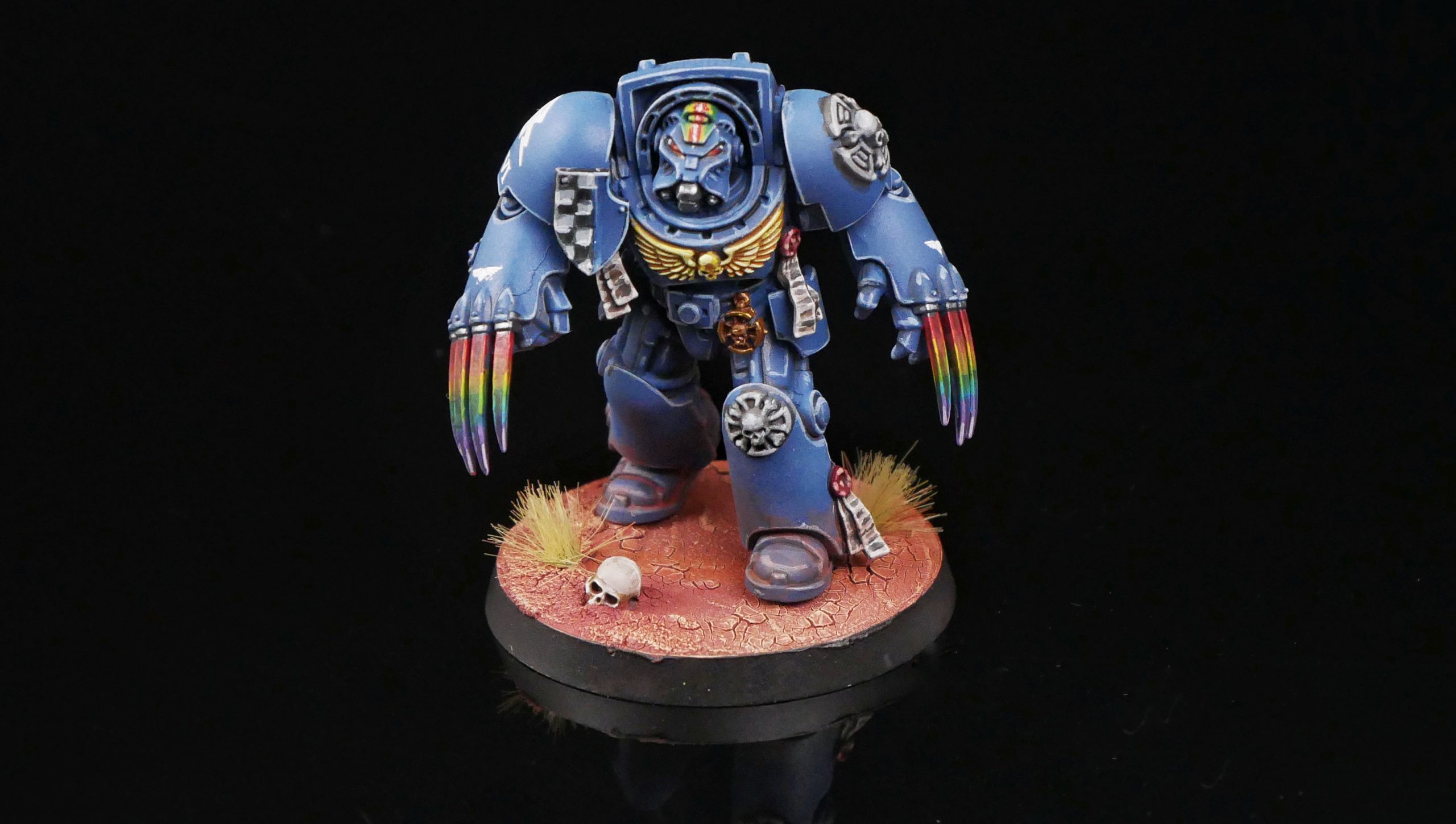 MasterSlowPoke: The models go together very quickly, I got 5 lightning claw terminators assembled in just a few hours on a single night. As far as the lightning claw variant goes, I didn't feel the need to do any sort of sub assembly. On other 10th edition terminators I've left the heads off, but honestly there's not a whole lot of reason for me to do that. The portions that you can't get the brush into are completely obscrured by the hood, and I'm not painting mine with white helmets like the Ultramarines do.