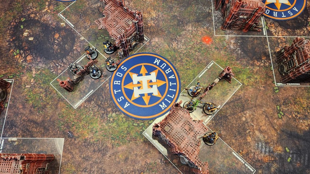 very common drop spot on round 3, when units have typically moved out of that alley between ruins and toward objectives at midfield.
