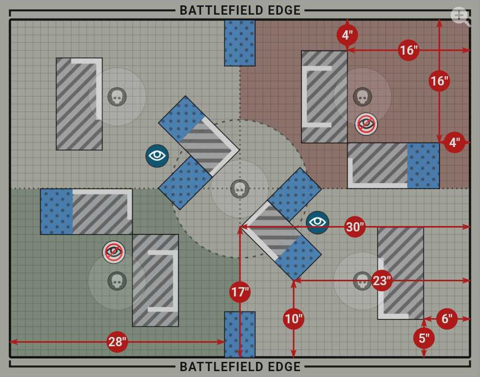 C ruins that make up the big L-shape defining your deployment zone. The width of this gap will vary based on the terrain being used and the event's layout choice.