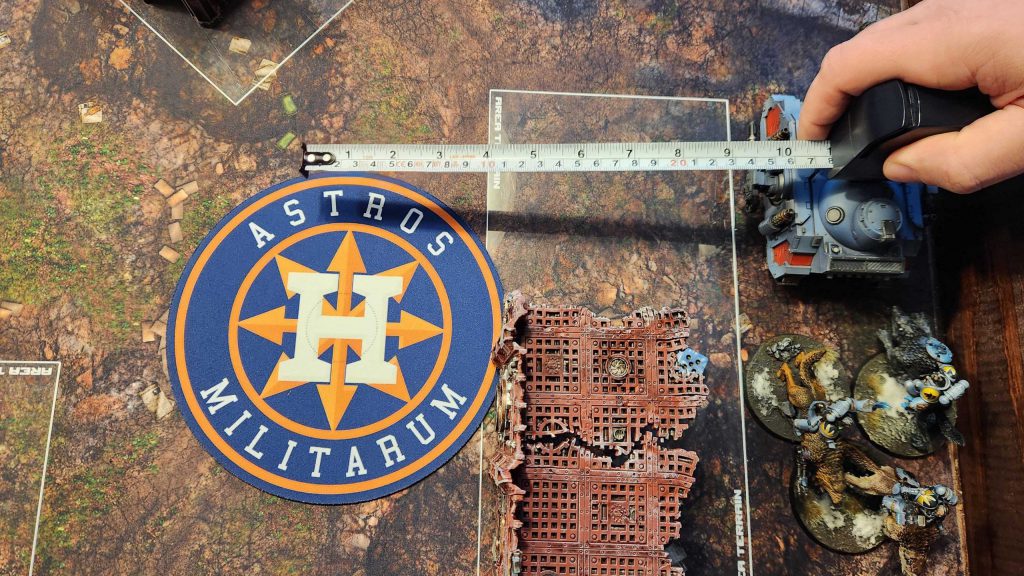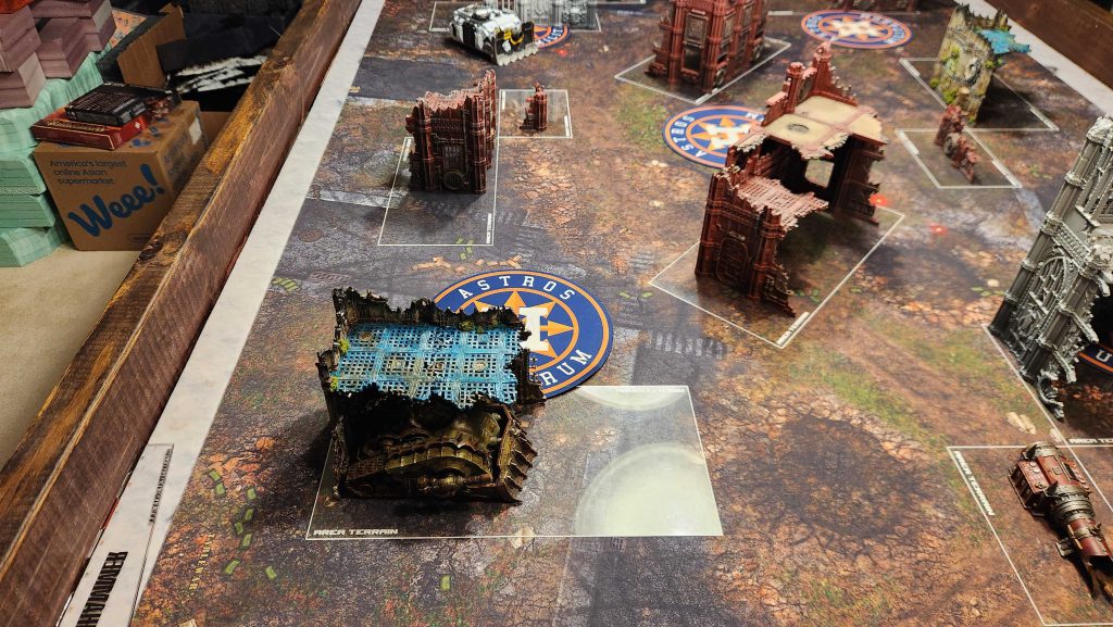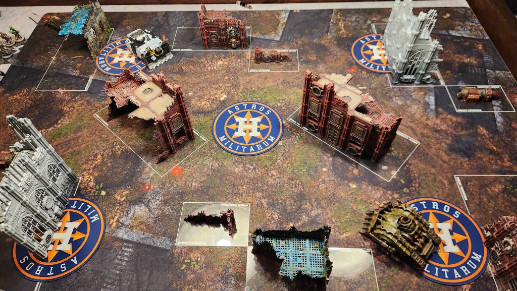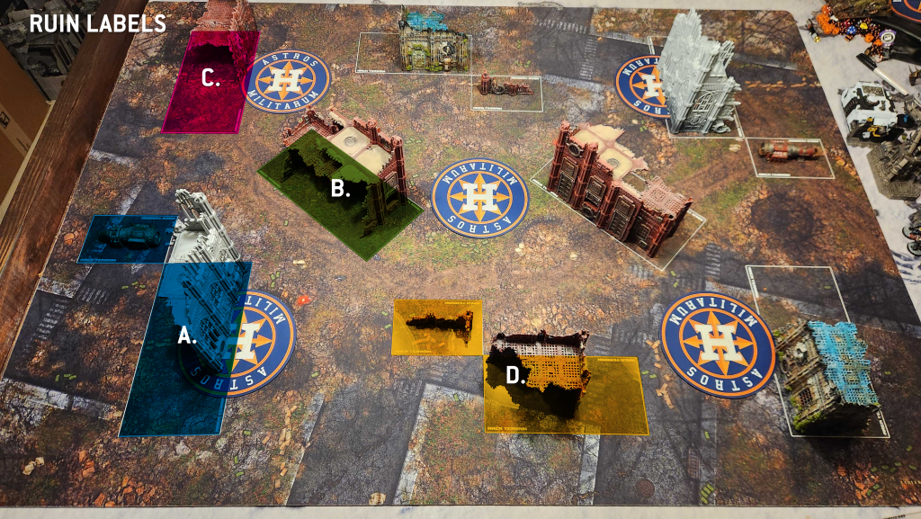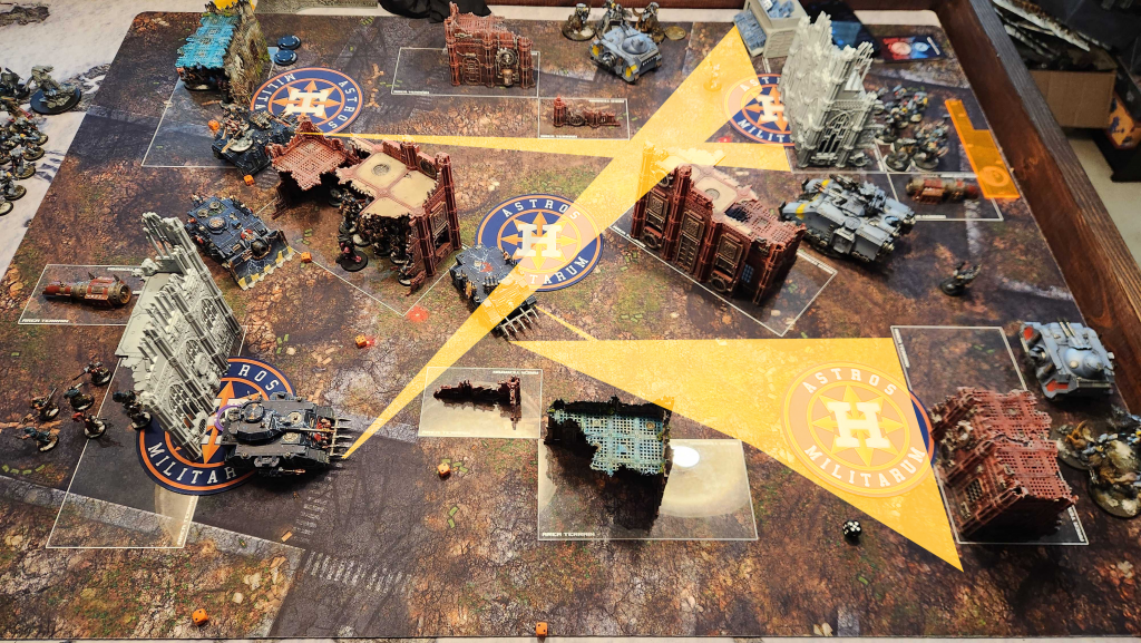 One more thing to note is that you can typically fit a tank wholly within that D ruin near the long table edges and get visibility out of said ruin if it doesn't go all the way to the edge of the table. This can give you pretty protected visibility into the middle of the table.