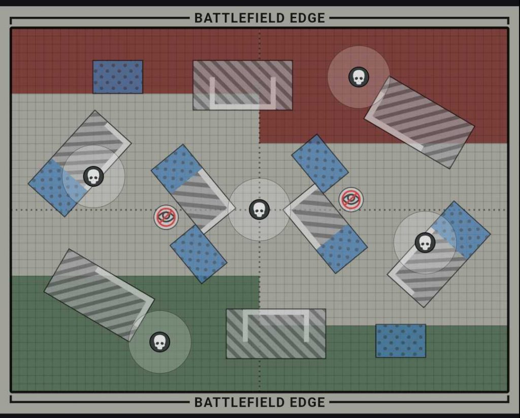 Layout 3 isn't my favorite layout. It's difficult to set up and pretty open. If you're on Search and Destroy it's a little more balanced; otherwise, it's going to be a huge benefit for shooting-oriented armies that can outrange opponents and use the easy movement to position tanks to be able to score easy kills. The lack of safer deployment spots will combine with this to make it much more generous to the player going first, so you'll want to try and avoid getting caught in bad positions early unless it's part of a plan to bait an opponent out.