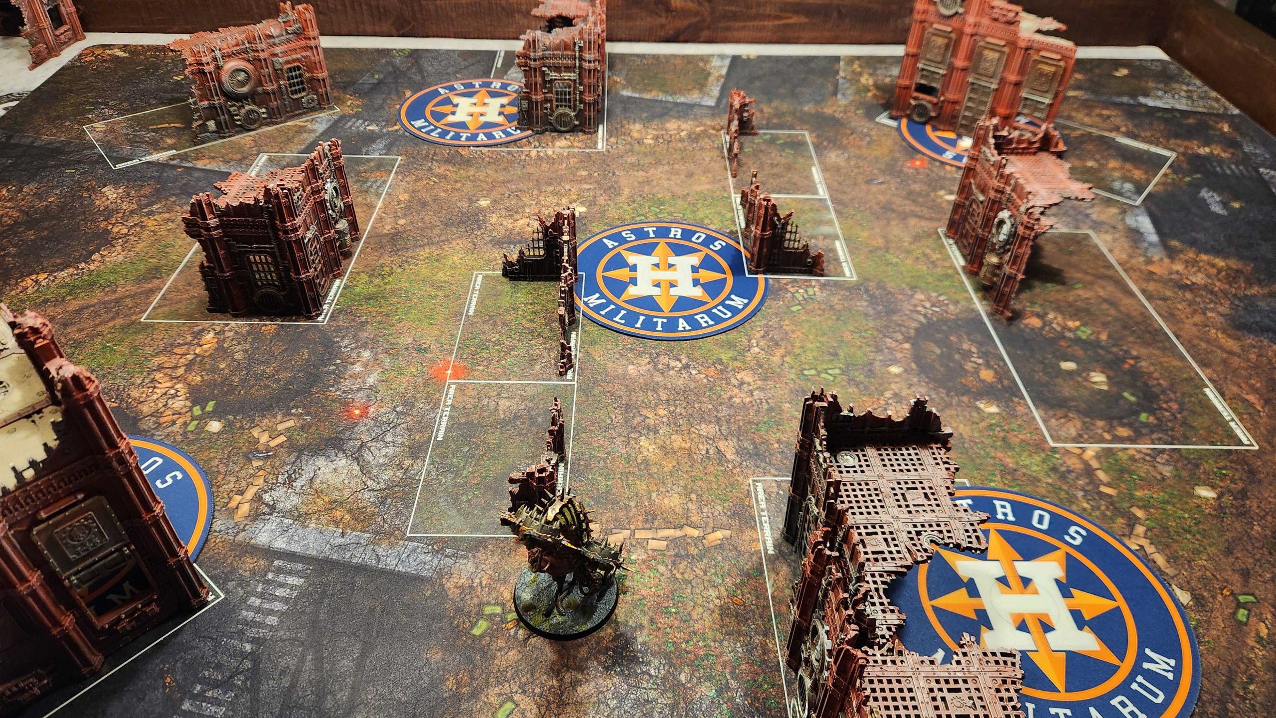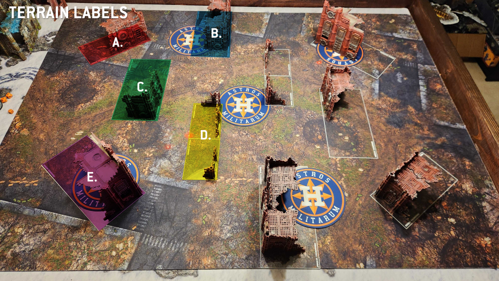 E. Your large corner ruin. This large ruin gives you a protected spot with which to hold your home objective on Tipping Point/Crucible and similar to the small ruin, can act as a shield for Deep Striking units later in the game.