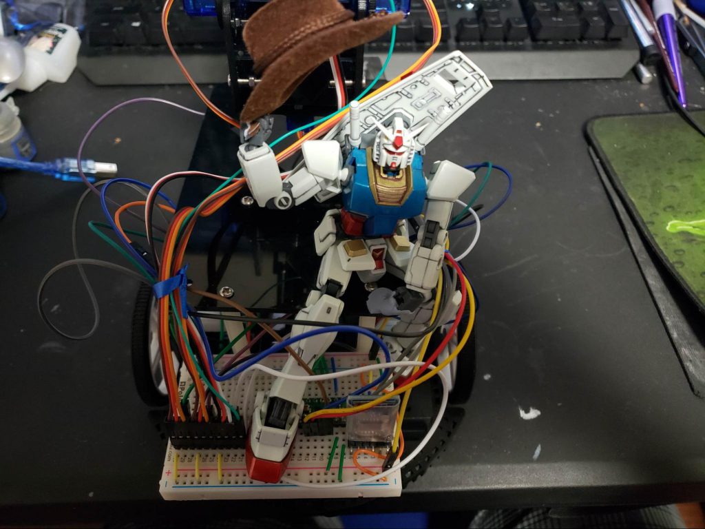 Michael: When I was still in college I took a robotics class, and I had the idea for a dumb (this is 99% of all my decision making) way to make my little robot stand out. I mounted one of my High Grade Gundams to the robot, and wanted it to be like Slim Pickens riding the bomb in Dr. Strangelove. I had the robot, the mounting tape, and the model, so all I needed was the cowboy hat. After a week of searching I found the right size hat, but they were only sold in packs of 4, so I had to find ways to use the other 3. I plopped one on my Astraeus once as a joke because of the name of the list I was running at the time, and people responded so positively that it has sort of become my personal brand locally.