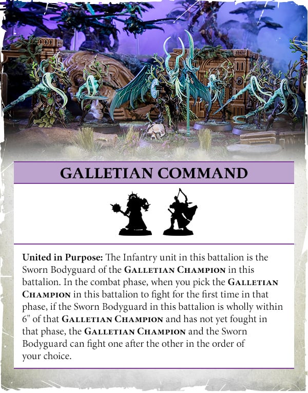 The Day Is Ours! - Have more Galletian Champions from your starting army than your opponent at the end of the game. Kind of unreliable unless you're an army who can field a lot (say, Fyreslayers). Then this might be worth looking at.