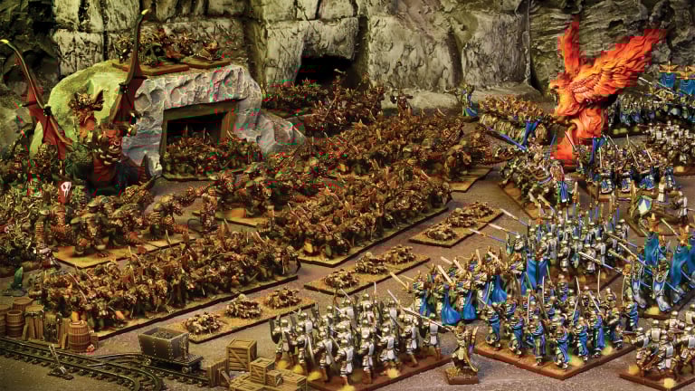 It is not advised to take tactical advice from big cinematic battles like this. For instance, the army on the left is Ratkin Slaves. Credit: Mantic Games.