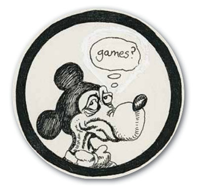 Robert Crumb, creator of Fritz the Cat among other works. The result is this thing, a kind of depressed Goofy/Mickey Mouse hybrid, who asks "games?" (sic) in a way that seems to suggest he can think of nothing he'd like to do less.