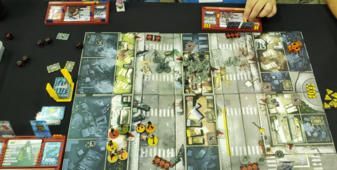 One thing I love about Zombicide games is that they work just as well with four players as they do with eight; just as long as you have enough zombies and spawn points to keep things challenging. Six is the recommended party with “2E”, but we picked an eight-character roster and made sure it was a well-rounded team. My partner painted the models up to make them easier to recognize at first glance, assigned them colored pegs for their character boards, and helped me pack everything up. I watched some play tutorials online, ran a couple practice games with my chosen scenario, took some deep breaths, and hopped on a plane.