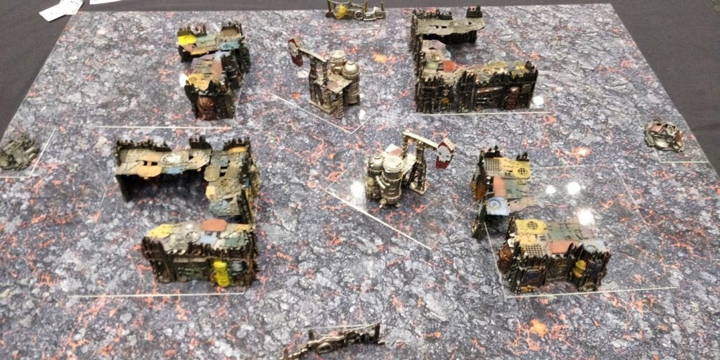 Ahead of the event, players were notified that the planned split between Critical Ops and Into the Dark missions was being scrapped. Instead we played a total of six Critical Ops missions on the same terrain all weekend, with diagonal deployment on Saturday and long edge deployment on Sunday. I was quite looking forward to playing Into the Dark for the first time, and I imagine I wasn’t the only person disappointed with the last-minute change. It was the sole (minor) sour note for me for the whole event. Otherwise the terrain was all Octarius, with some notable unevenness in the level of completion of the paintjobs, as some pieces were essentially only primed with Leadbelcher.