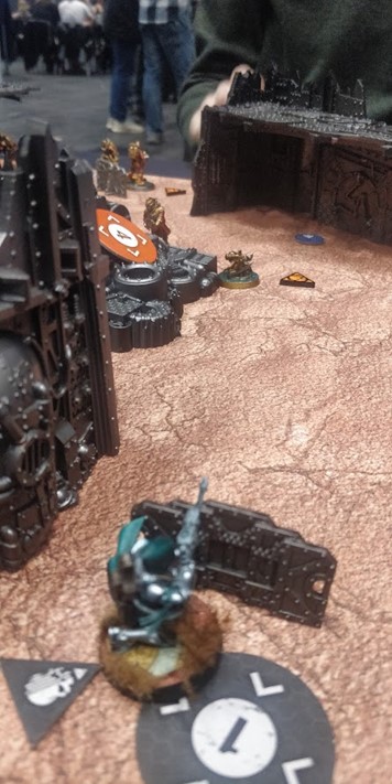 Before the game, I got talking with a fellow Corsair entrant (who also entered the GD with an insanely cool 6mm scale Aeldari titan diorama) about Elf Bullshit. Rather than use the Duellist operative as a counterpunch unit as I do, he likes applying the two possible pre-game dashes from Infiltrate and One Step Ahead to it. A further dash-move gets the Duellist right into the opposing deployment zone in the first turning point, ready to cause Shenanigans.