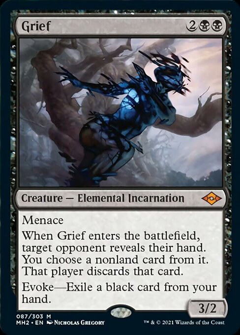 FromTheShire: There's a ton of buzz about Grief and Ephemerate on turn 1, and for good reason. You get to take two of their best nonland cards and you still have a 3/2 with menace in play, perfect for when it rebounds the next turn. Not only are you aggressively stripping their hand, you also have extremely useful info about what they are doing. Time will tell if it's as busted as some people fear, but I'm certainly up for starting a game in that position.