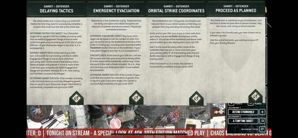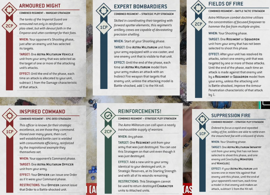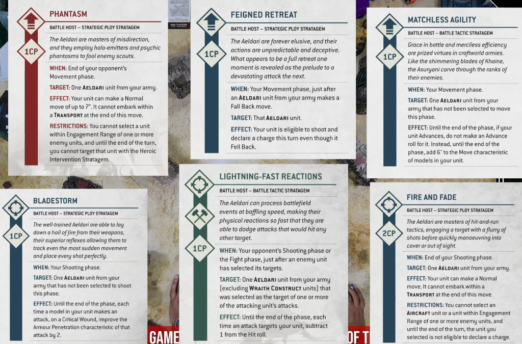 The game between Gonyo and Nick gets to show off a whole bunch of new datasheets for both Astra Militarum and Aeldari, but the highlight was the full stratagem list for both the Militarum and Aeldari detachment for us to see.