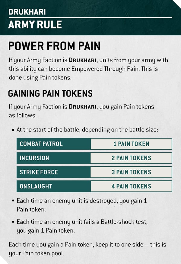 Drukhari players get to start with even more pain tokens thanks to the detachment rule for