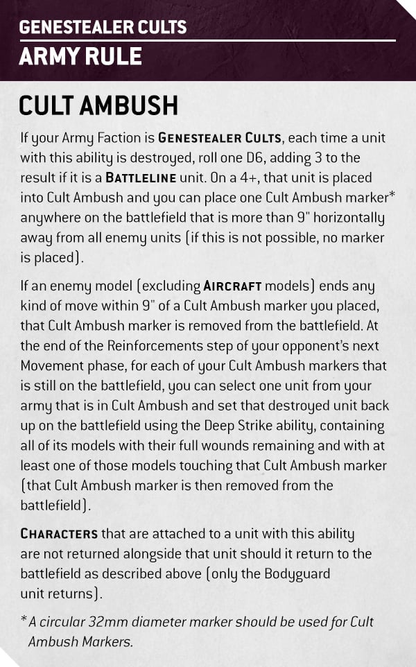 Cult Ambush, one of their two army rules, has been enormously changed.
