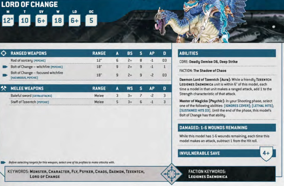 The absolute most scary change though is, if he’s within 3” of any friendly infantry, you can’t shoot him unless you’re less than 12” away. Leaving you with the option to get close, or melee him (you’ll end up in combat either way), where you’ll then be in for a very, very bad time.