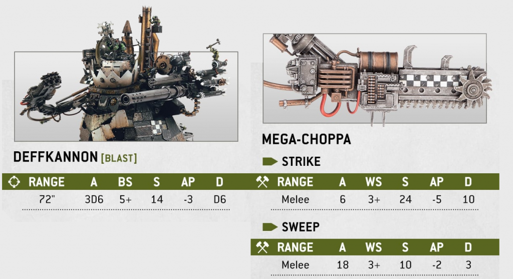 First is the Stompa, the Deffkannon might be the swingiest weapon known to man, giving you between 3-18 shots, with a ⅓ chance of hitting, and then doing D6 damage. You might obliterate anything in the game, or mildly inconvenience one Guardsman.