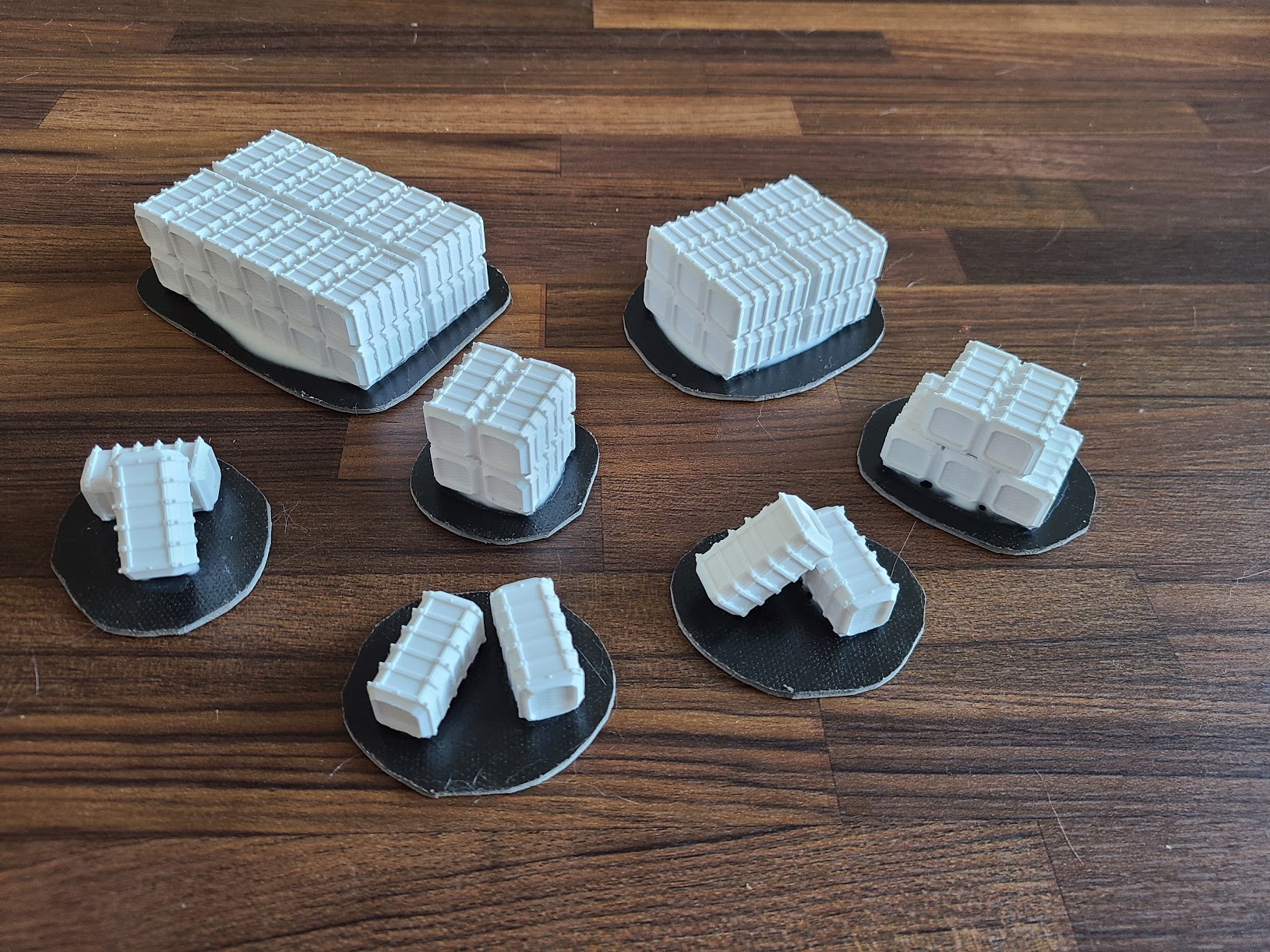 3D Printed Cargo Crates painted by Crab-stuffed Mushrooms