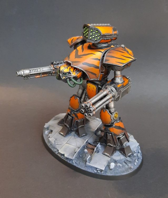 When you just NEED to kill things better. Ranged weapons only, so sorry for all those Warlord claws, but before firing choose to increase heat on your reactor by 1 (2 if the weapon has 5+ shots) and gain +2S on a weapon firing. The first things that spring to mind here are S9 Macro Gatling, S14 Volcano, S12 Maximal Fire Plasma (poor poor reactor), S11 Mori Quake Cannons (cause you cheaped out by not taking that Belicosa you actually wanted) but also S7 paired gatling on the carapace if you can allow the Heat.
