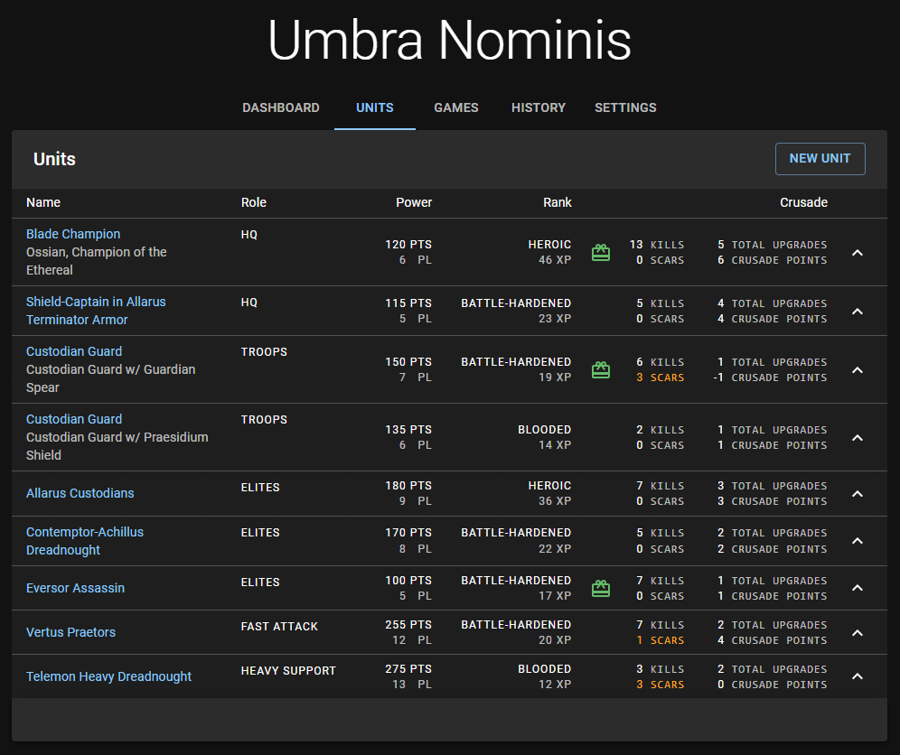 The Unit tab in each of your rosters has received a big, big upgrade. More information at your fingertips, making it the perfect "let me check that on my phone" reference for the middle of a game.