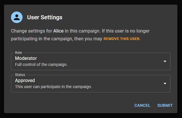 Moderators have all the same permission as campaign admins, except moderators can't delete the campaign itself. Perfect for lending a helping hand on keeping the campaign up and running. But what if you want to hand off ownership of the campaign entirely? That's where admins come into play!