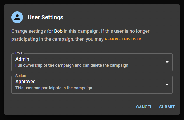 Admins fully own the campaign and can do anything they want with them, so be careful handing out that power. While you can have multiple admins on a campaign, it's also the perfect way of handing the campaign over to another player and then peacing out. And don't worry, moderators can't promote themselves or other users to being an admin, nor can they demote or delete admins. We here at Goonhammer run a .