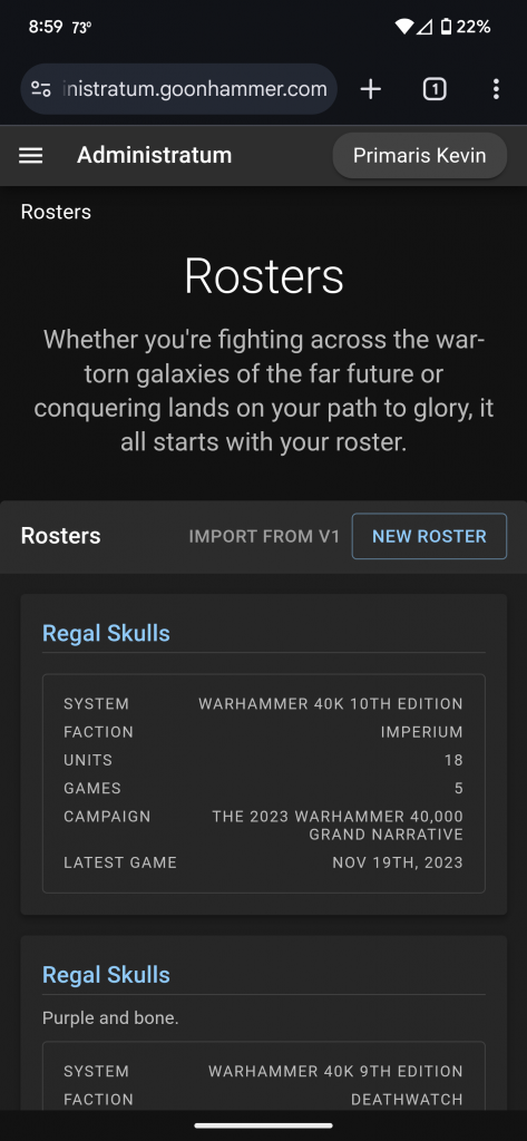This article is part of a series designed to help you navigate the Administratum app that Goonhammer provides to help players navigate the rules for Crusade campaigns. In this article we cover how to make a roster, add new units, and edit your entries.