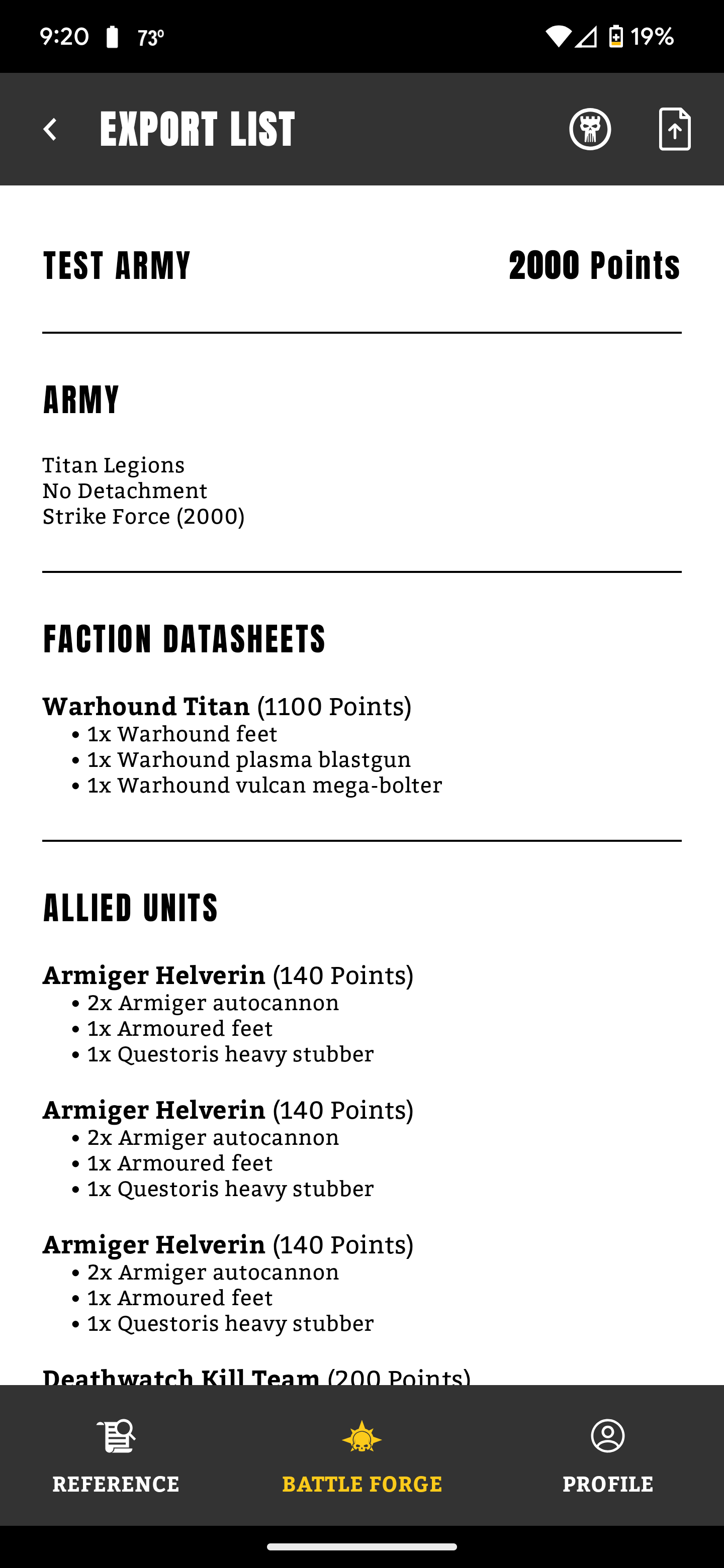 Importing from Battlescribe