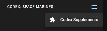 Once installed, click the hamburger menu on your roster dashboard's Codex: Space Marines section. Then click Codex Supplements.