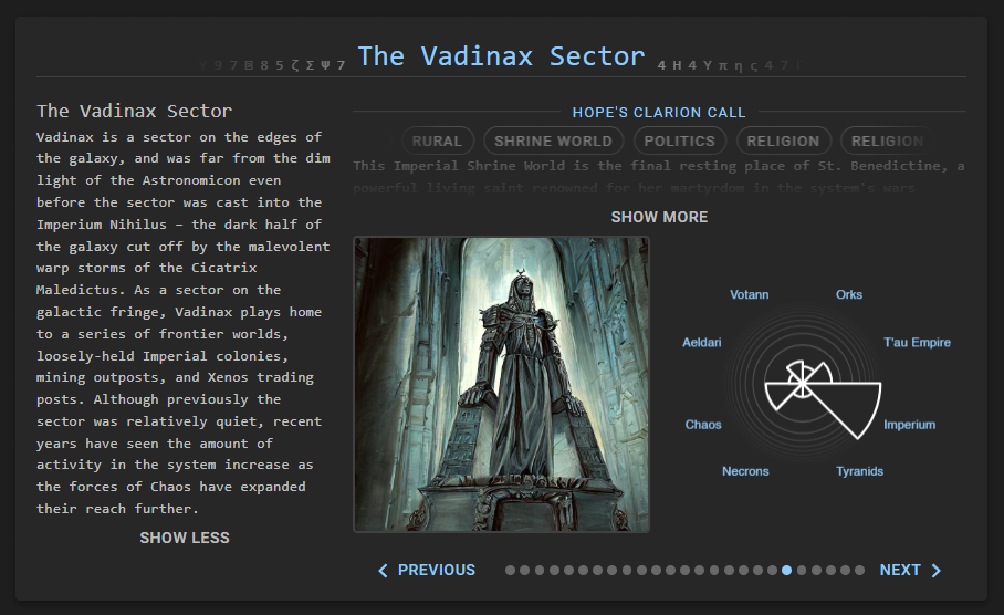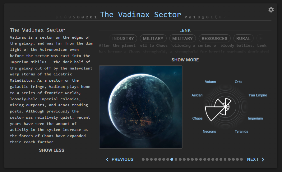 "But Pendulin", I hear you say, "what's this got to do with Administratum?" I'm glad you asked, you convenient narrative-framing-device you. Administratum is keeping a close eye on the conflict in the Vadinax sector, and we have a live feed of the system-wide territory control available on the Vadinax Campaign page.