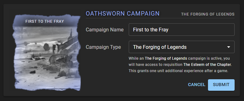 With the add-on installed, you'll be able to embark upon an Oathsworn Campaign. Bring honour to your chapter, recover lost relics, or embark upon a quest of your own narrative making.