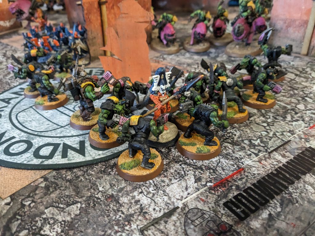 Another quick finish gave some more time to talk, and to admire Martin’s army - here the thing that caught my eye was the mirroring of the spot-colour pink from the squigs to some of the details on boyz’ guns, making for another very consistent colour scheme. The 2-3 record was about where I’d been projecting as a solid result, but having scored that first win on day one I was hungry to equalise the record in game six.