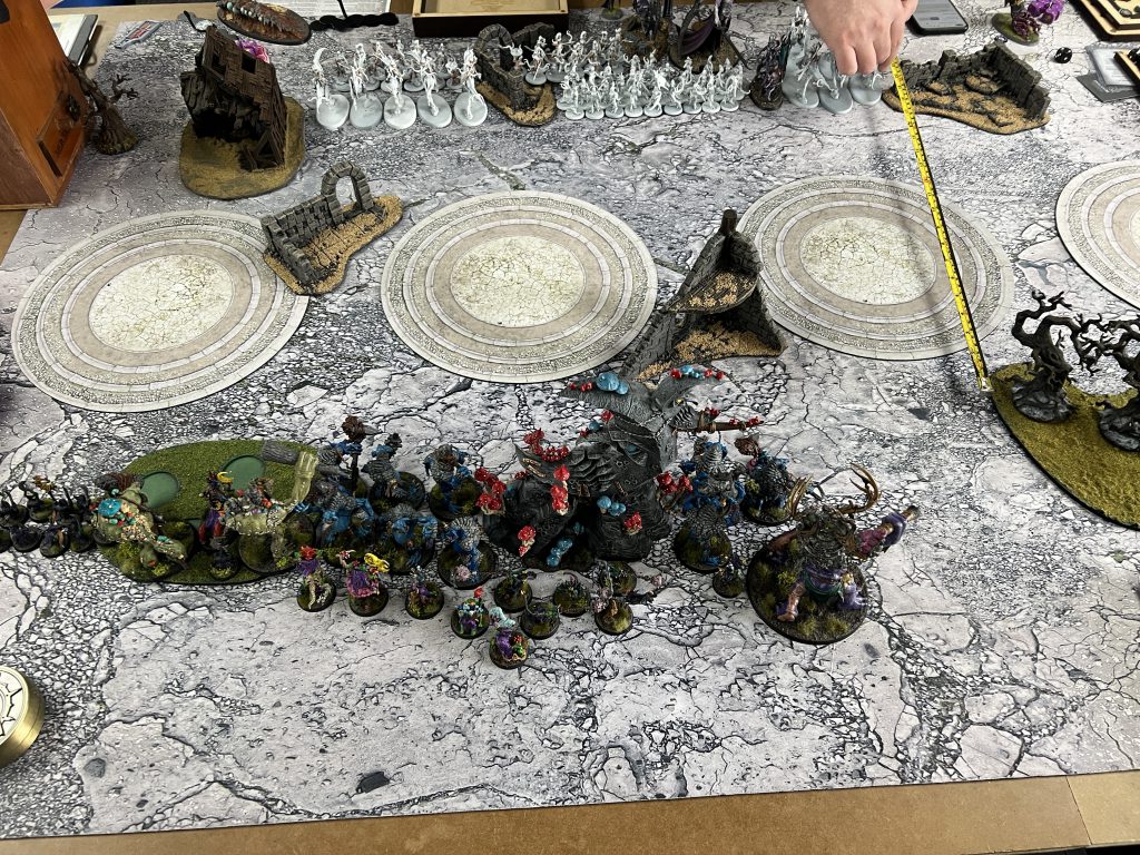 Sporesplatta Fanatics combined with the Troggboss' ability to just stack extra attacks where I needed also invaluable. This quickly becomes a list of keeping tight 9" and 12" auras as well as command range across multiple units for maximum output and flexibility. It's incredibly fun to play! It's also just very, very good as an army. With a total of 6 casts and unbinds (2 of which are at +1), very hard hitting melee units that are also very tough and heal up every hero phase
