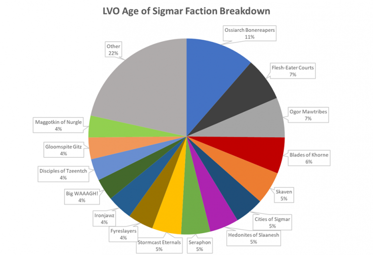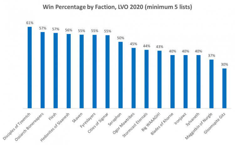 Couple of notes: The Warhammer GT didn't publish subfactions like the other tournaments, and Las Vegas open was the only tournament to not allow the new Disciples of Tzeentch and Kharadron Overlords tome, which has a major effect on the results