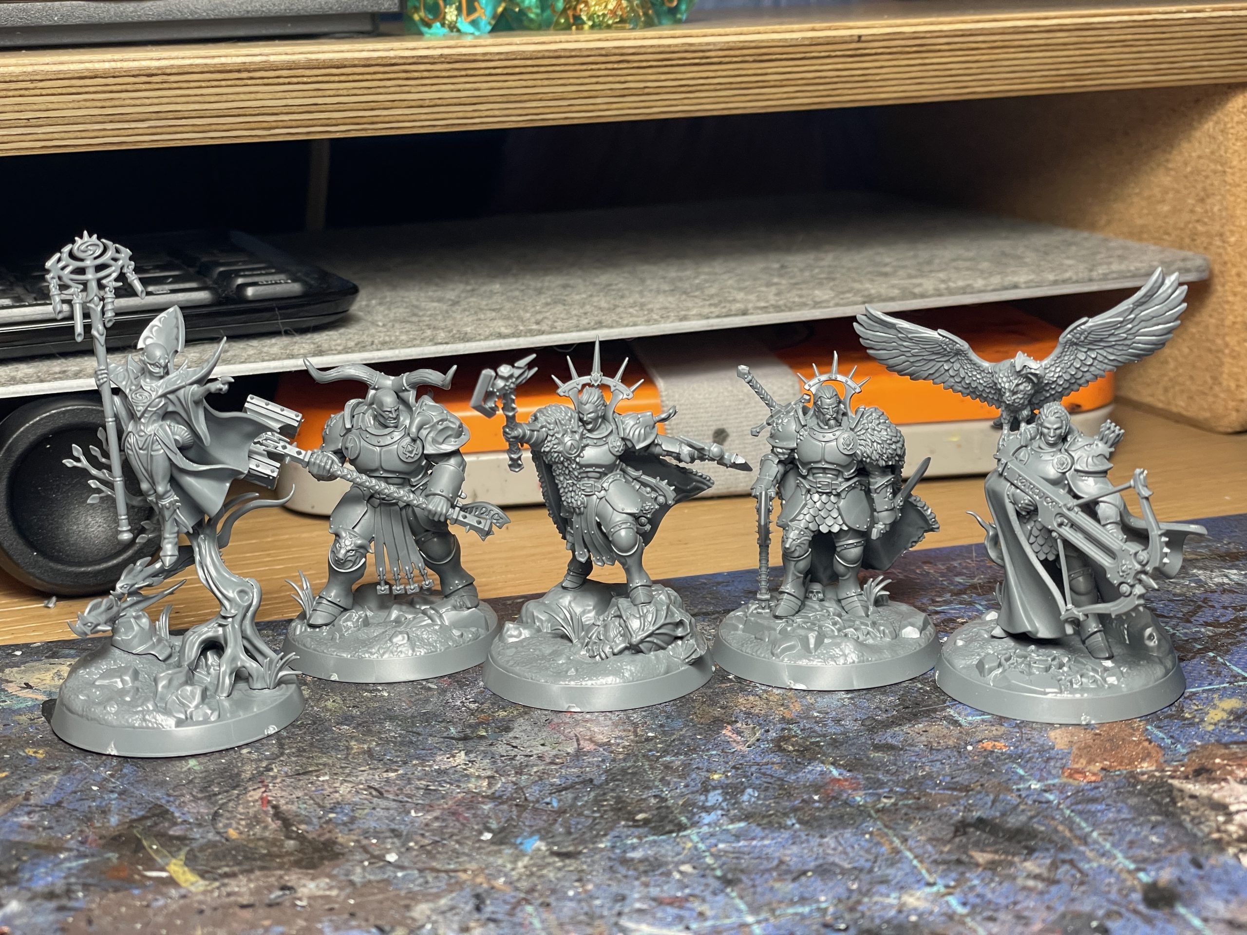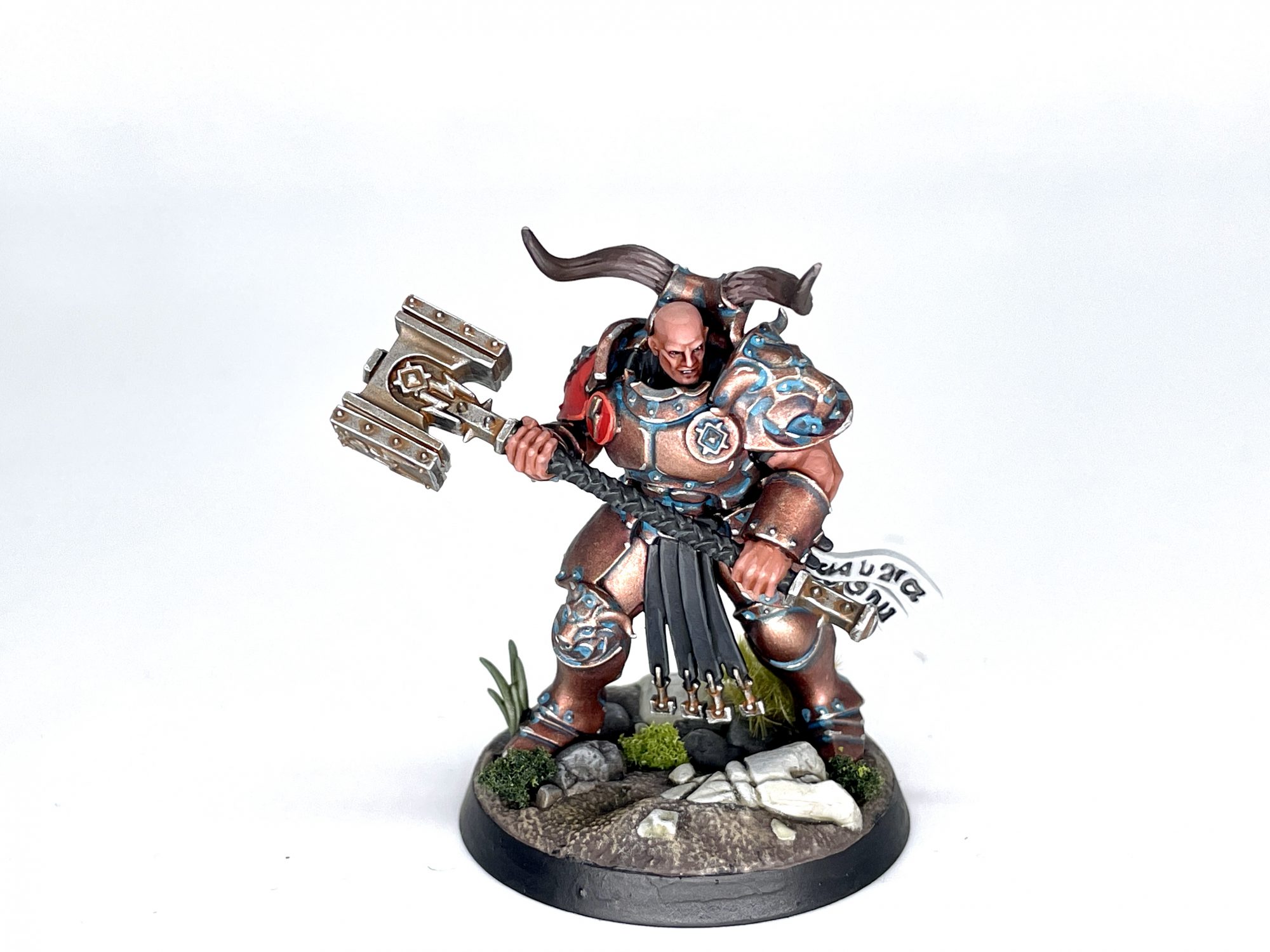Despite being a specific group of characters from the Hammers of Sigmar Stormhost, I painted this group in the colors of my own Stormhost,