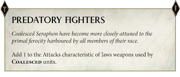 RagnarokAngel: I like the two allegiances. They clearly wanted to try something very different here and they did with the Coalesced, but it won’t drive off the people who actually enjoyed how their army played. Even better, because of how the faction abilities work, you can flip between them and not have to rely on specific types of units to get by.
