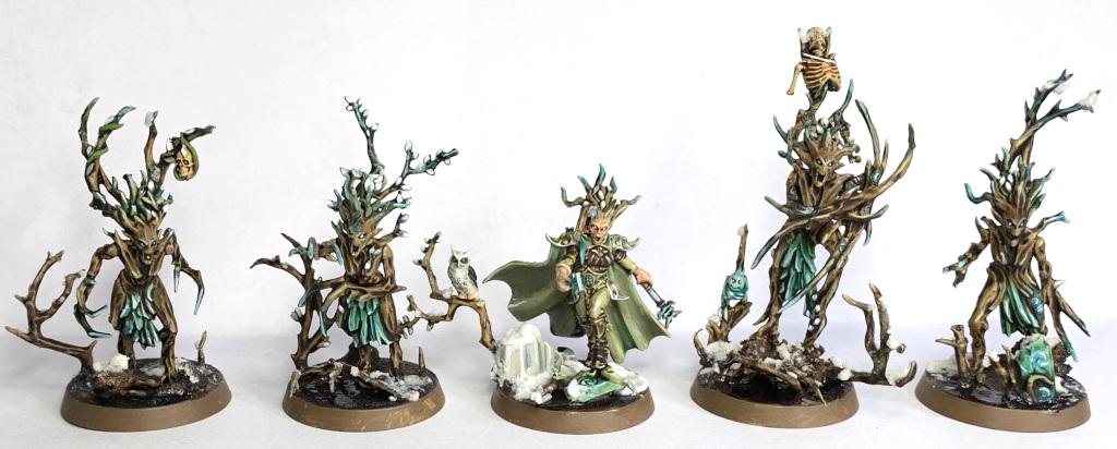 The Warband consists of 5 Sylvaneth Dryads, 3 Sisters of the Watch (nee Sisters of Avelorn), 3 Shadow Warriors, and led by their general, a Spellweaver who is actually on loan from the Idoneth Deepkin's Tidecaster academy.