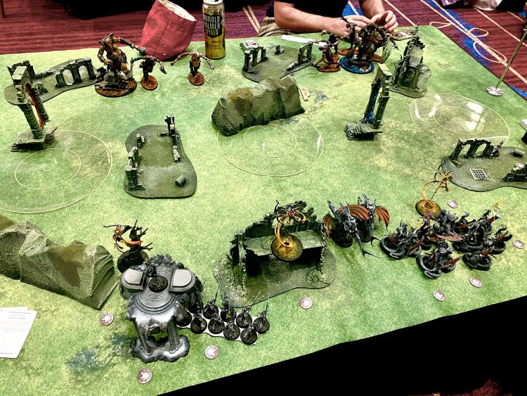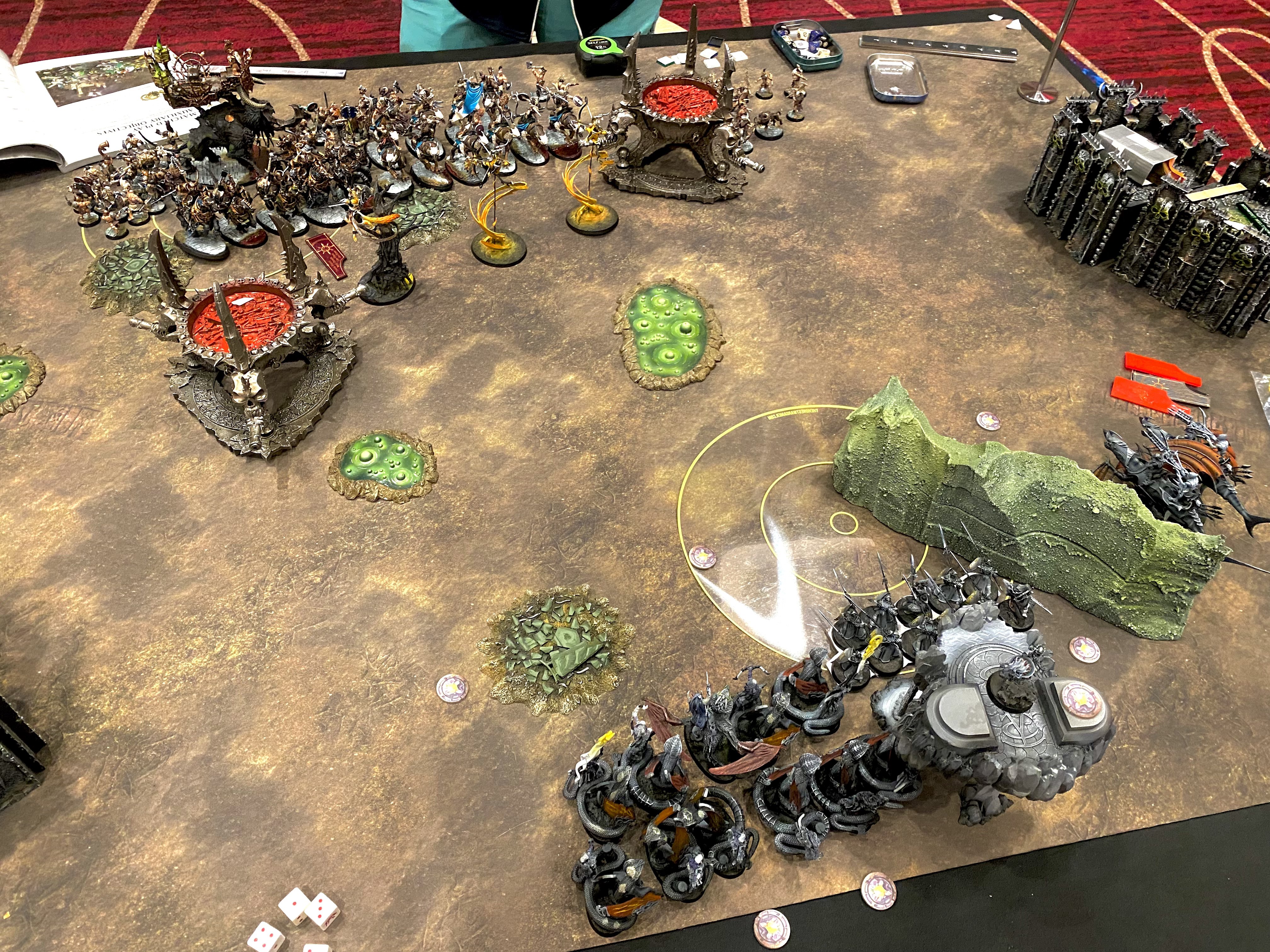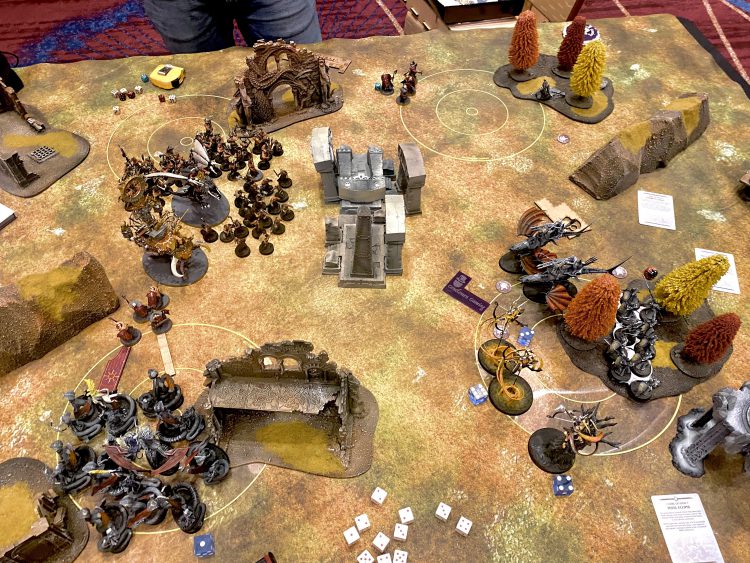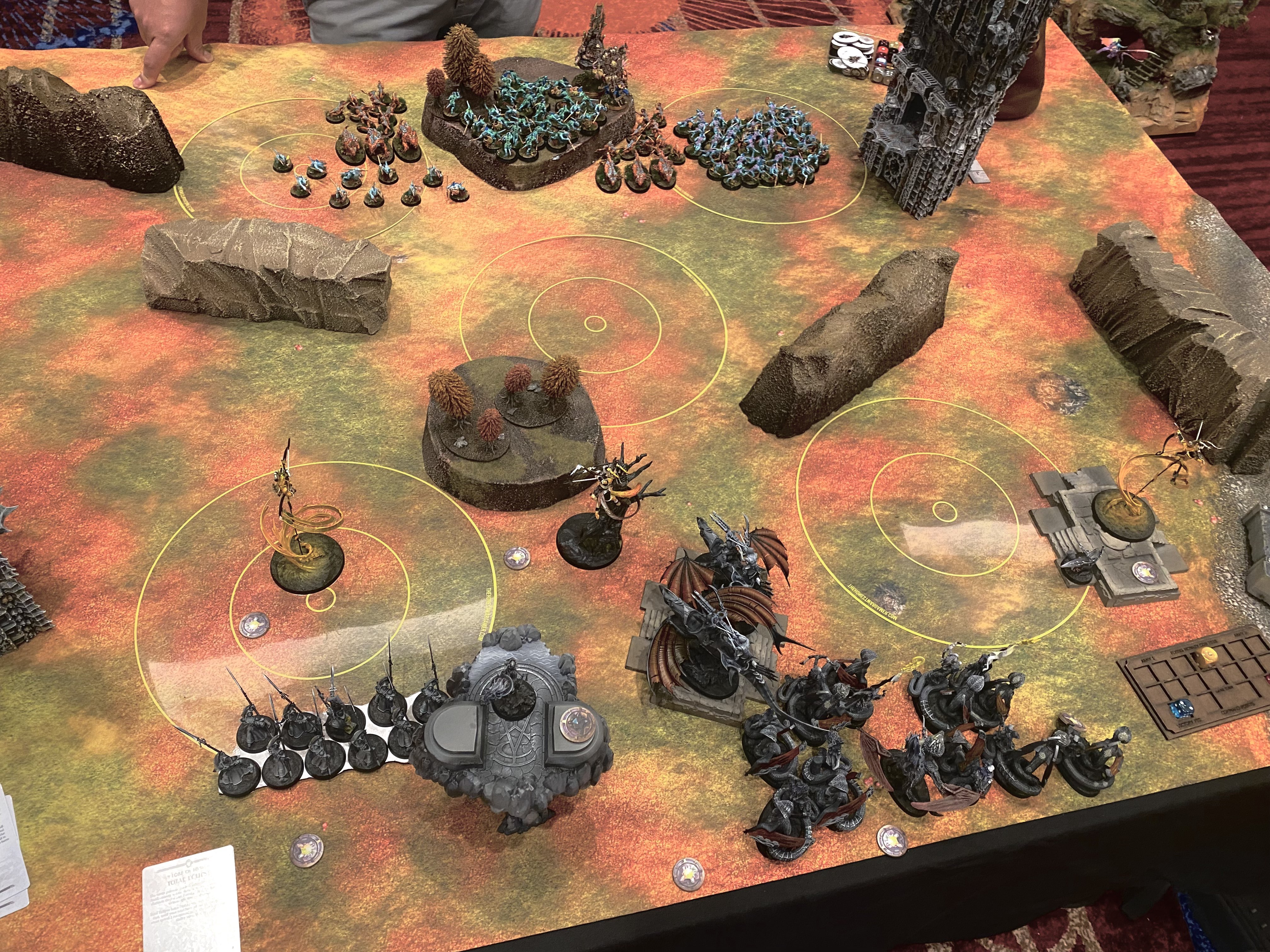 The ACO was the first Major Age of Sigmar event in America since The Pancake (Rob: This is what JoeK calls the pandemic). 72 players meeting up in, you guessed it: Atlantic City. The ACO was one of the most open-spaced, fully air-conditioned, and well ventilated venues I have ever been to. And if you don’t know me, I have been to a lot of tournament venues. The ACO was a 5-round event, with the first three rounds hosted in the Realm of Metal, while games on Day 2 were hosted in the Realm of Life. Each round, the mission was randomly generated from a list of 7 possible missions, which had been published ahead of time. Which is a weird way to do it, but it was what it was.