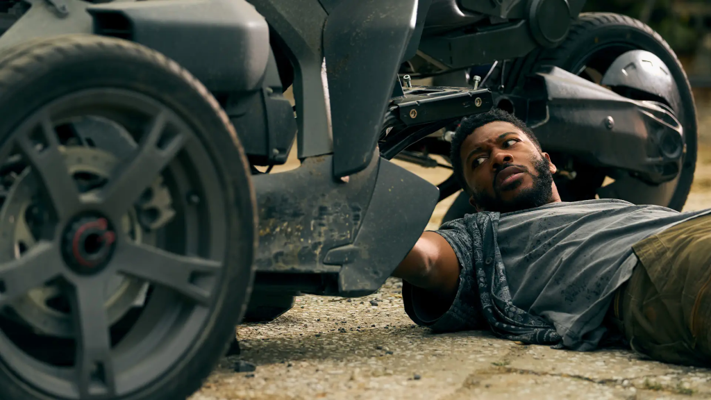 Gotta love a show with motorcycles in it. Eli Goree as Conner in his usual state of crushing it. Credit: Amazon