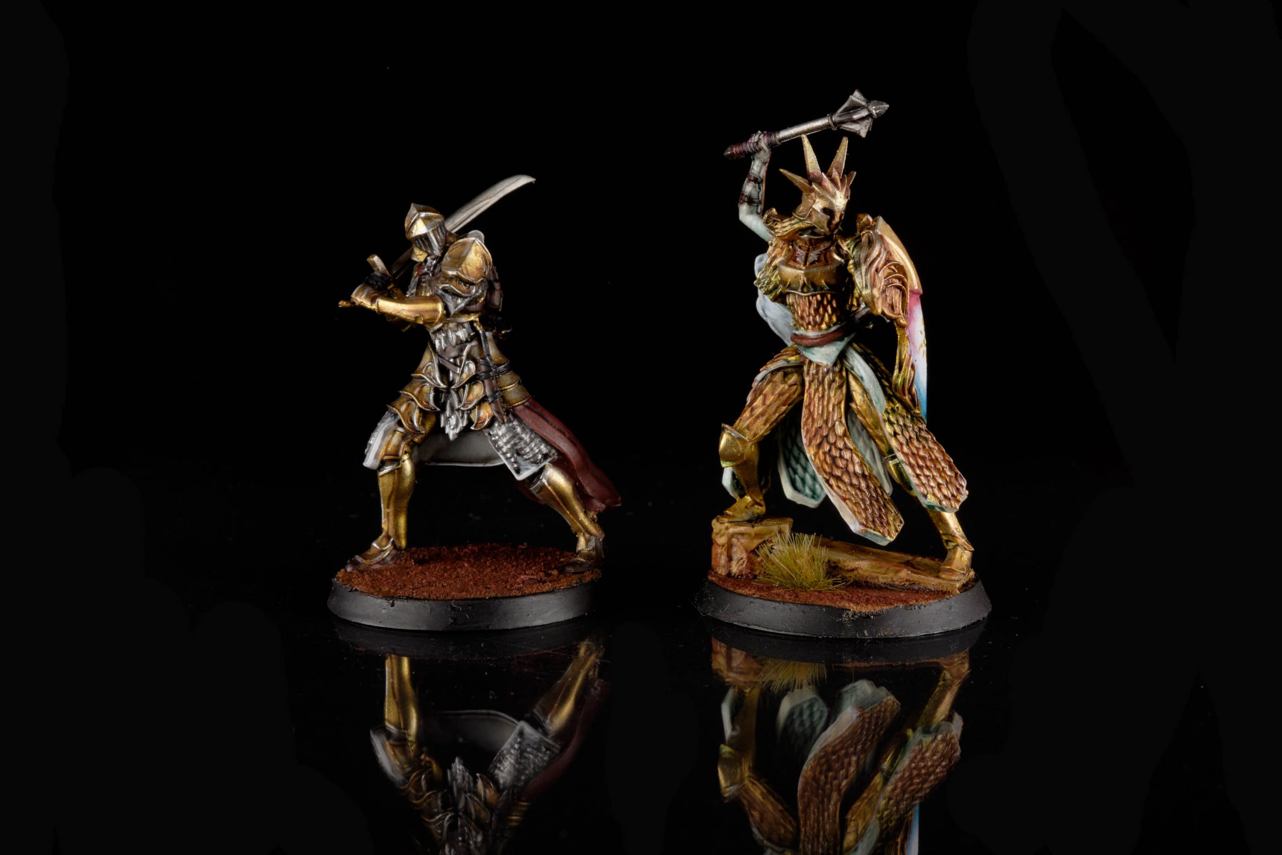 A proud and harmonious people, the Helian league organized and lead the battle to save Calad from the invading forces. Clad in shining armor, these people of the sun are the balanced faction, including a melee threat, defensive guard, offensive spell-caster, and divine mage. This is a faction that works best when it works together and makes good use of the Soldier class to strengthen themselves when in close proximity. As this is a small model-count skirmish game, however, if the Helians get picked apart by distance or deaths they can start to see things crumble.
