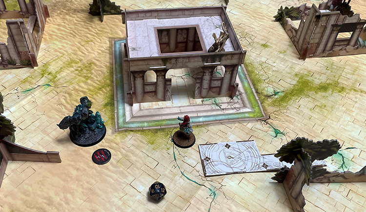 As each model only have a limited number of actions, players may discover they need to use their models and abilities to feint or draw out the Reactive players actions so they can accomplish their objectives while the enemy is exhausted. This may be simply by making potentially threatening moves with either disposable summoned minions or more defensible models (either armored or in cover or both) but there are some models that can force a model to react against their will using Taunt and others that can shut down a Reactive model for the remainder of the turn if they fall victim to a Charm ability. There's a lot of cool interactions to play with here and makes decision-making on who is taking an action and how both interesting and important.