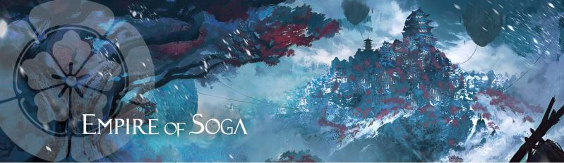 The largest faction in terms of territorial size, the Empire of Soga is a sprawling wintry location divided by feudal lords and hosting a variety of viscous spirits and demons. Drawing directly from Japanese culture, its fighters are primarily swordspeople, with an archer for covering fire and a fox-spirit spellcaster tagging along for good fiery measure. Like the Coalition these are powerful at close range, but they offer a much better defensive profile and boast the most HP out of any faction. Something tactically interesting is that most of its models are of the Warrior class, which allows them to be a potent threat even in the Reactive role. They are the powerhouse "clean fight" faction, using incredible skill and strength to eliminate the enemy through direct battle.