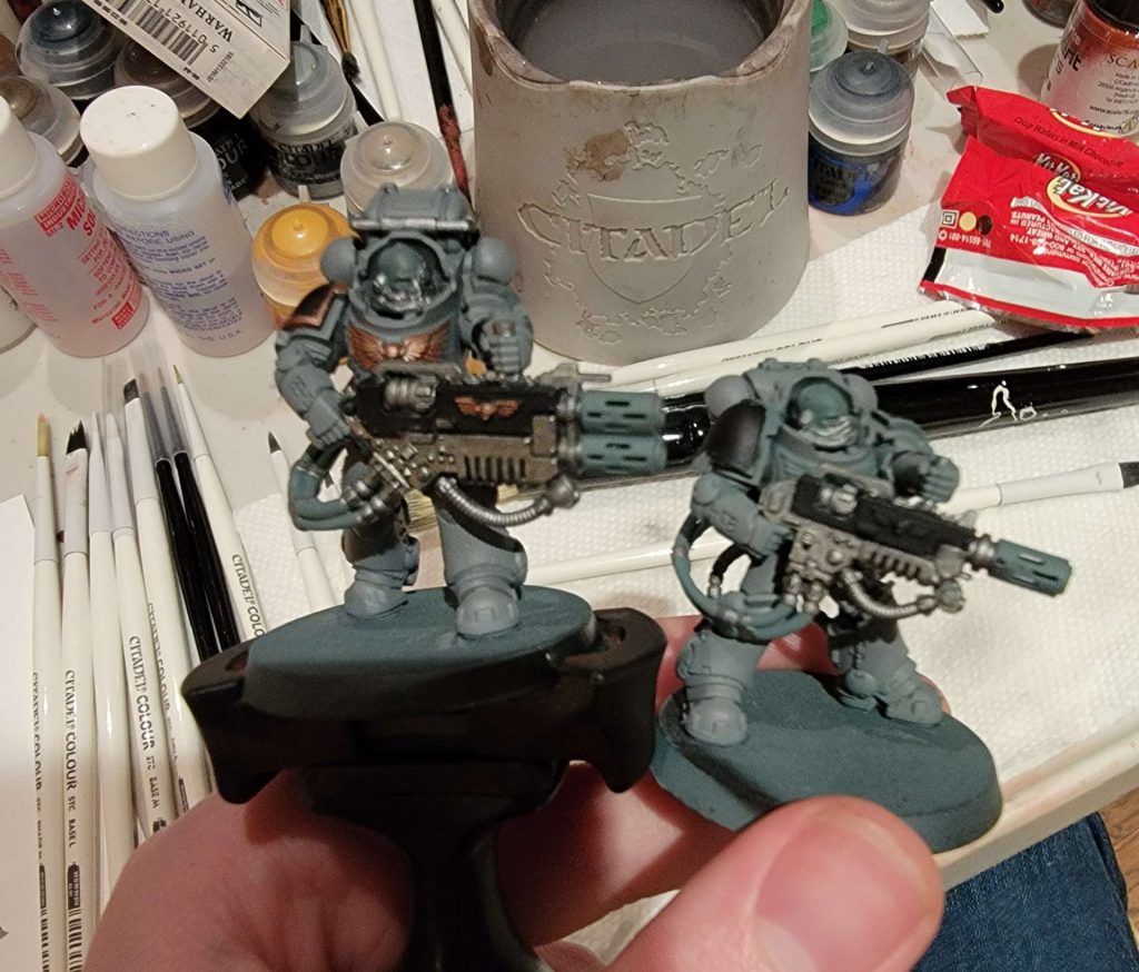 With those almost done, I’m looking at potential units I could sub in for more narrative flair. For that I’m leaning towards Phobos units as a counter point to my predominantly Gravis equipped main force. I’ve got 5 infiltrators primed and waiting, but I’m thinking a Phobos Librarian or reiver Lieutenant would be a cooler addition since I’ve already got one squad of infiltrators I use in my normal list. I’ve got an Invictor that’s painted but needs transfers and a good red dusting. We’ll see where my heart takes me.