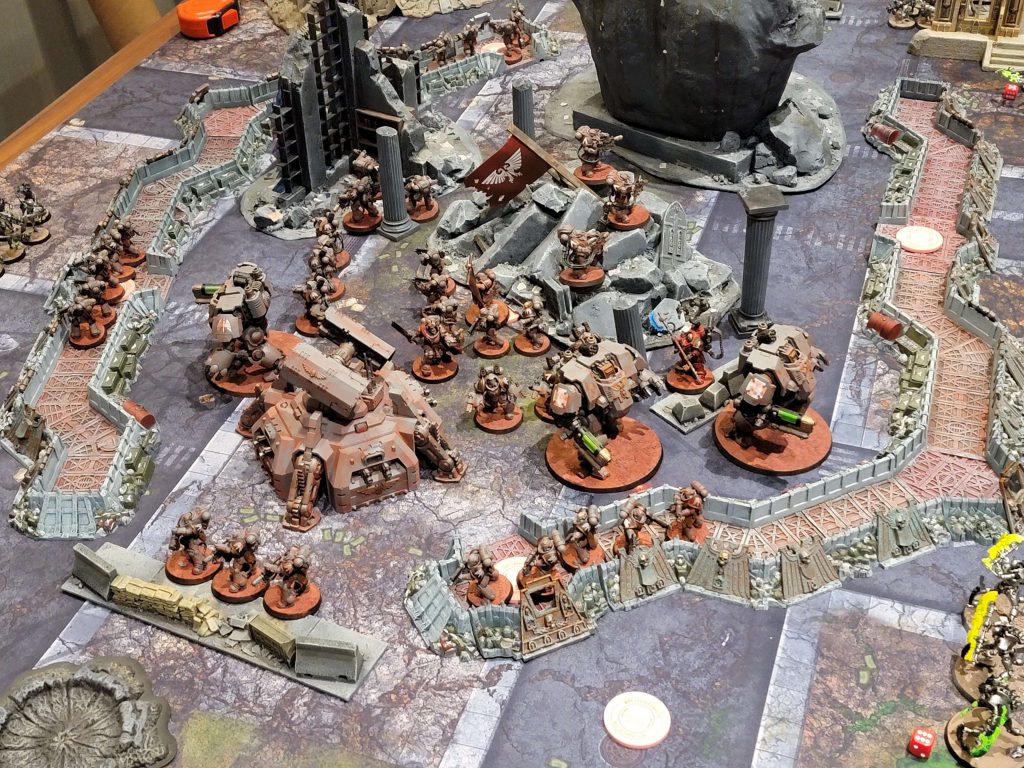 The chapter favors aggressive elimination of enemy fortresses and vehicle/super heavy deployments where possible which informs their standard deployments emphasizing eradicators, aggressors and dreadnoughts to smash and burn the enemy as relevant. But if placed on the defensive they’ll dig in hard enough to make a Guardsmen blush and make the bet that they’re tougher than whatever the galaxy can throw at them. Their last narrative outing was at the GHO narrative event in Maryland where the Sons of Ash dug into the planet of Lenk and held the line while the world crumbled around them. Now the 3