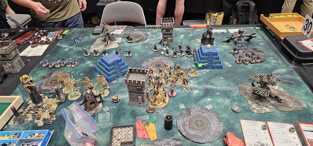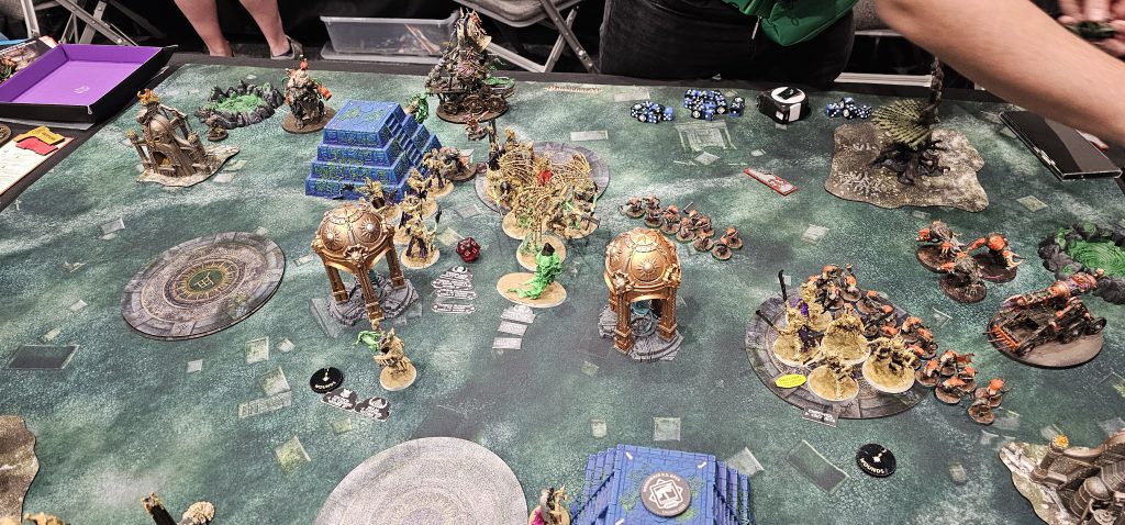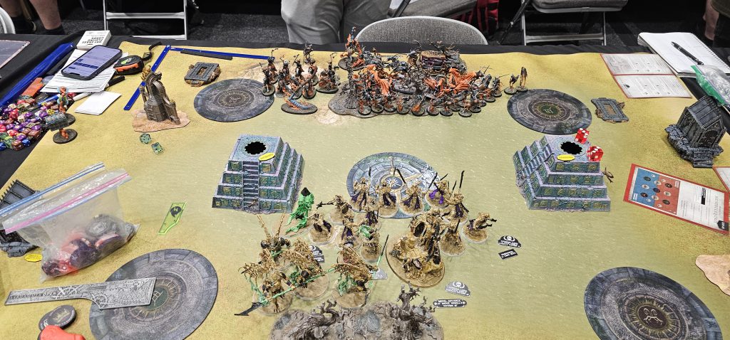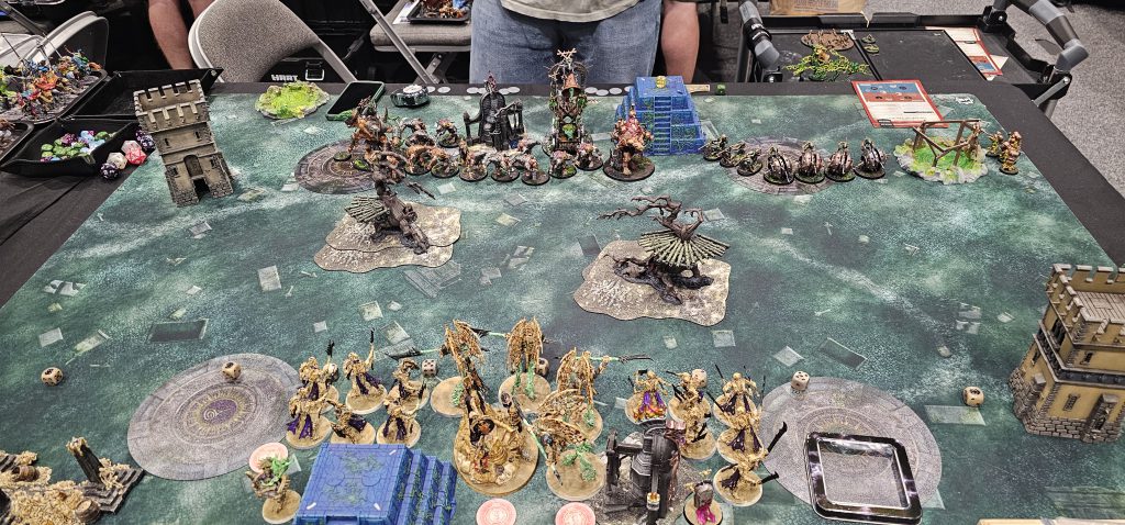 Leo was a great opponent, but this match was like going back to First edition Age of Sigmar. He gave me first go, and I figured with an objective in the middle there really wasn't a whole lot for me to do but go set up camp on the frontline and try and make an early play. I got a really strong start, getting full score and 2 battle tactics. Underdog in this mission isn't too bad, since it heals both players he never wanted to proc it.