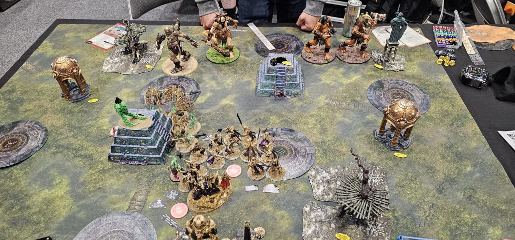 It mostly came down to the wire in round 5. When he used his Gnawholes to appear in my backline objective (the final Primary) I moved my Immortis Guard to the center. I Sent Katakros into the far right objective as a sacrificial lamb and managed to roll an incredible 10" Charge with the Immortis Guard to catch those pesky clan rats. By killing them I finished his last chance at catching up and clutched victory.
