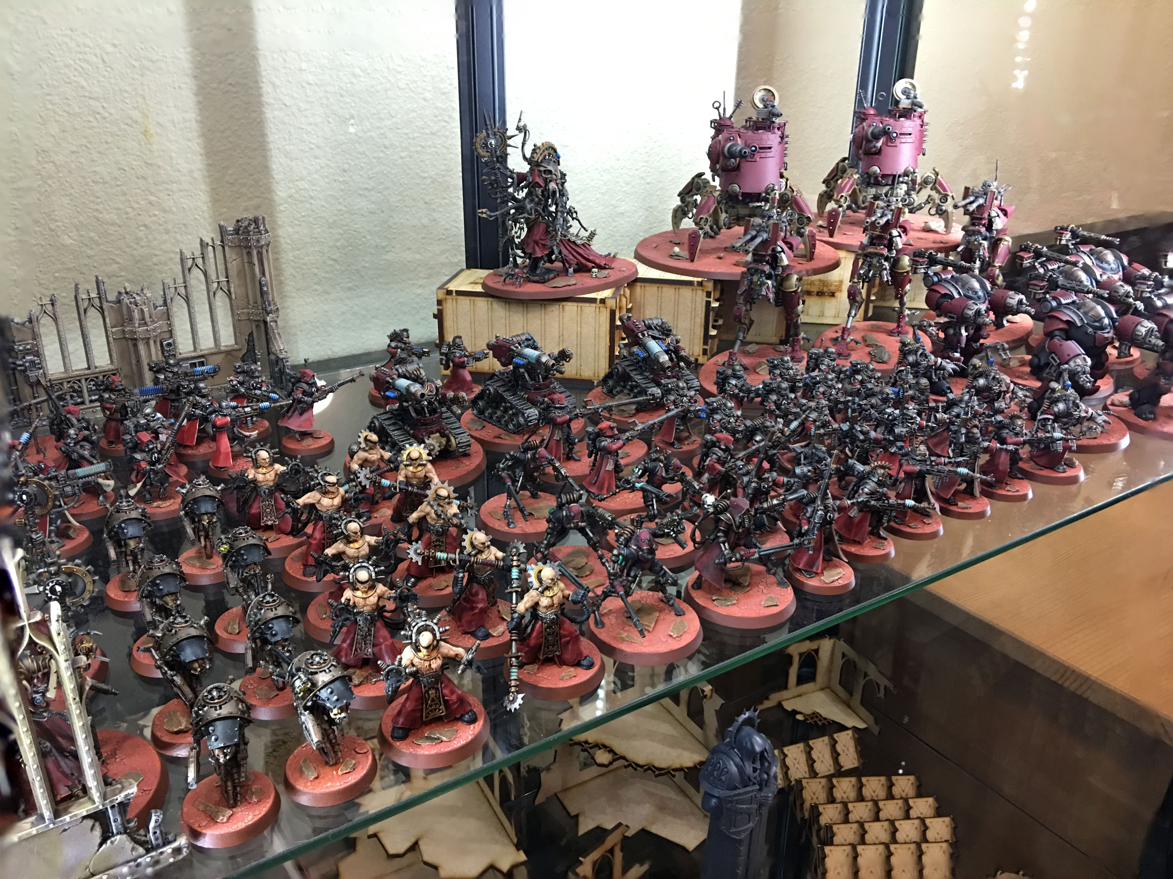 By "reach capacity" I mean own the practical maximum amount of an individual model. For example, once I hit three Dunecrawlers, the Rule of Three would prevent me from ever fielding a fourth, so building my final Dunecrawler is on my todo list. For Kastelan Robots, I recently achieved this by building my fifth and sixth robots just a couple months back. Other than Dunecrawlers, I'm still working on reaching capacity with Priests, Sicarians, and Skitarii .