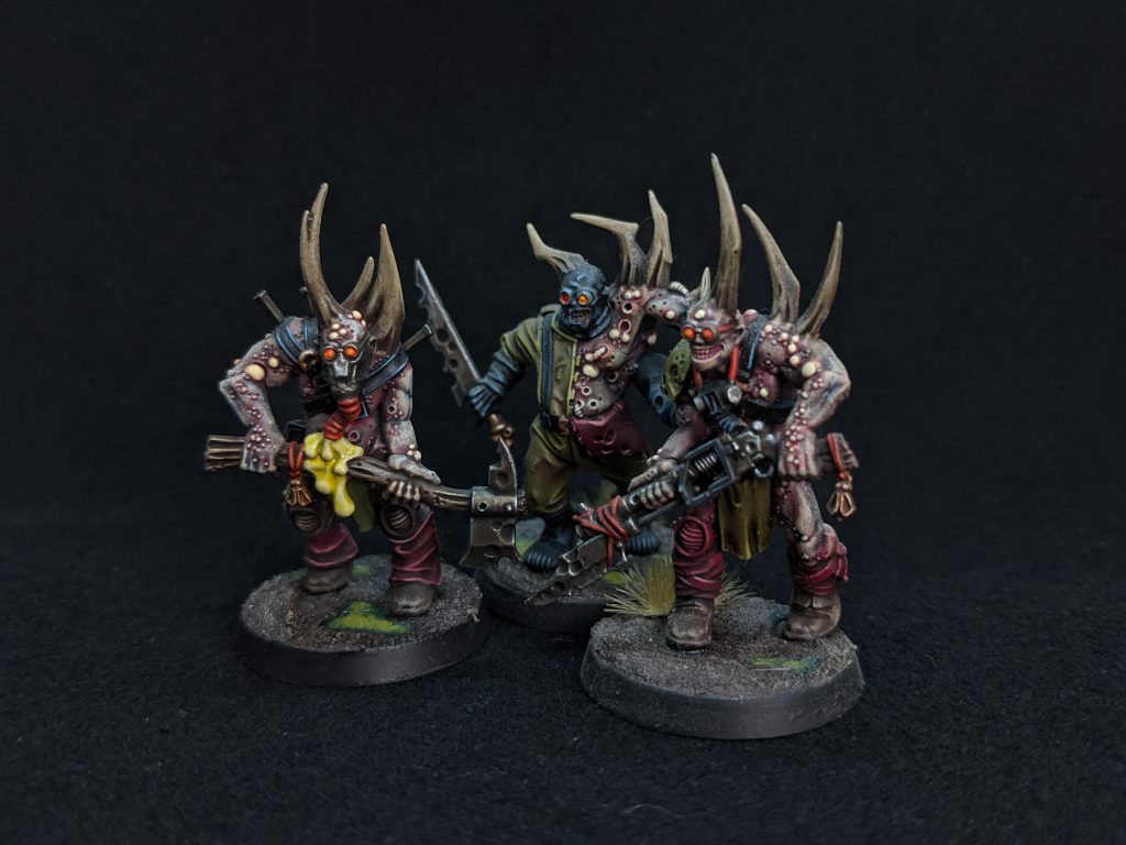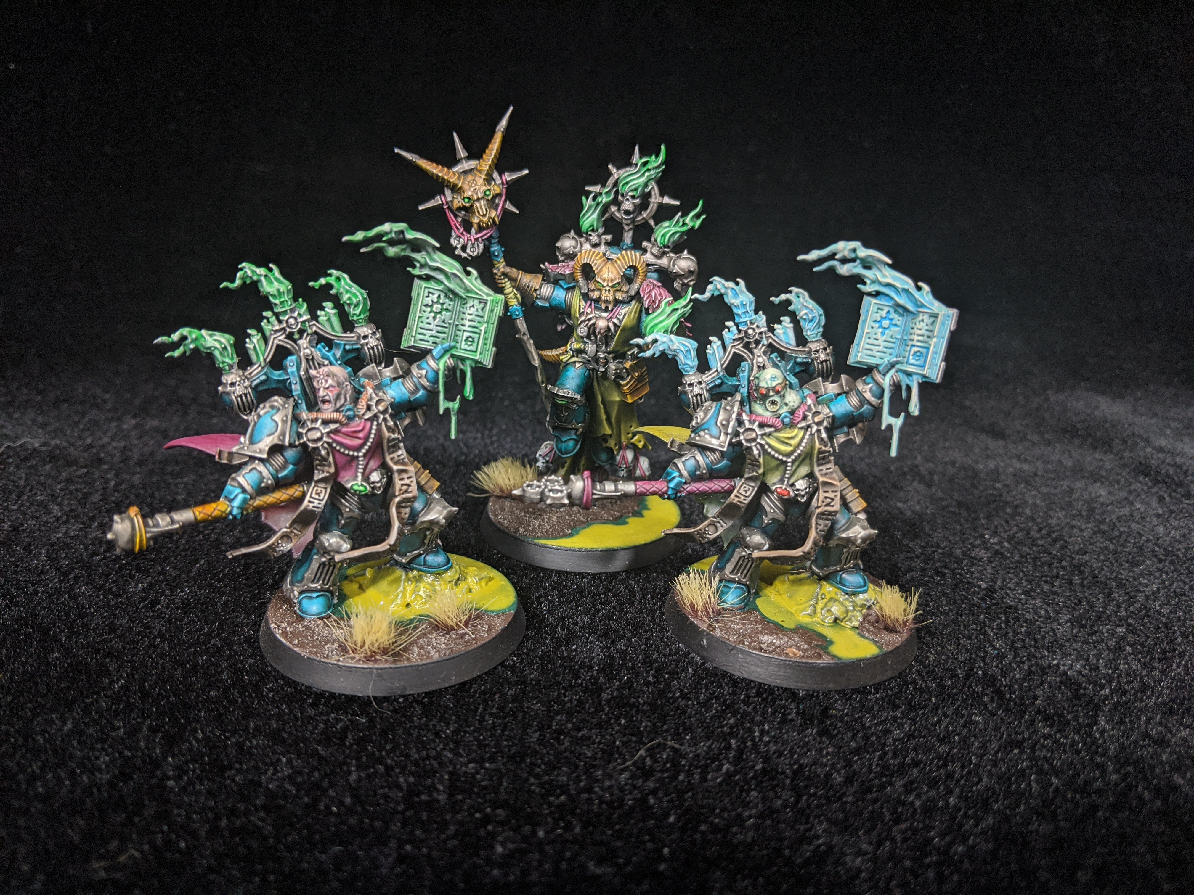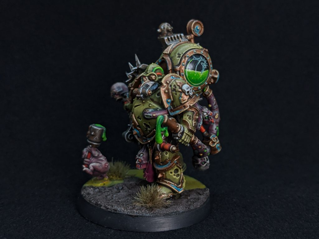 So here I am in North Dakota surrounded by some of the most enthusiastic players in the Midwest. I had Blood Angels and Space Marines, and absolutely no desire to play either of them. (Sorry Loyalists) Then Death Guard came out. I was in hog heaven. I had never forgotten about my love affair with the incredibly detailed and intricate Nurgle models from my competitive painting stint. They grinned at me from my painting cabinet. “Give us Brothers”, they said, Now I was interested, Truly interested in these new and revoltingly beautiful models.