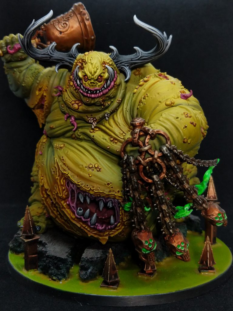 This brings us to 2010. Essentially, I had been collecting Warhammer for about six years, and had little to no table experience. I pushed trying to get better at the game aside and started buying random models for interest. Honestly, when you are looking at models for competition there are really only two ways to view a model. Either the model is incredibly detailed, giving you the opportunity to get lost in the sculptor’s work. Or the model is sparse, leaving you room to interpret the model in your own way. I’m certain you can imagine which is easier to paint for competition when you are new to the competitive painting scene. This is how I ended up falling in love with Nurgle models.