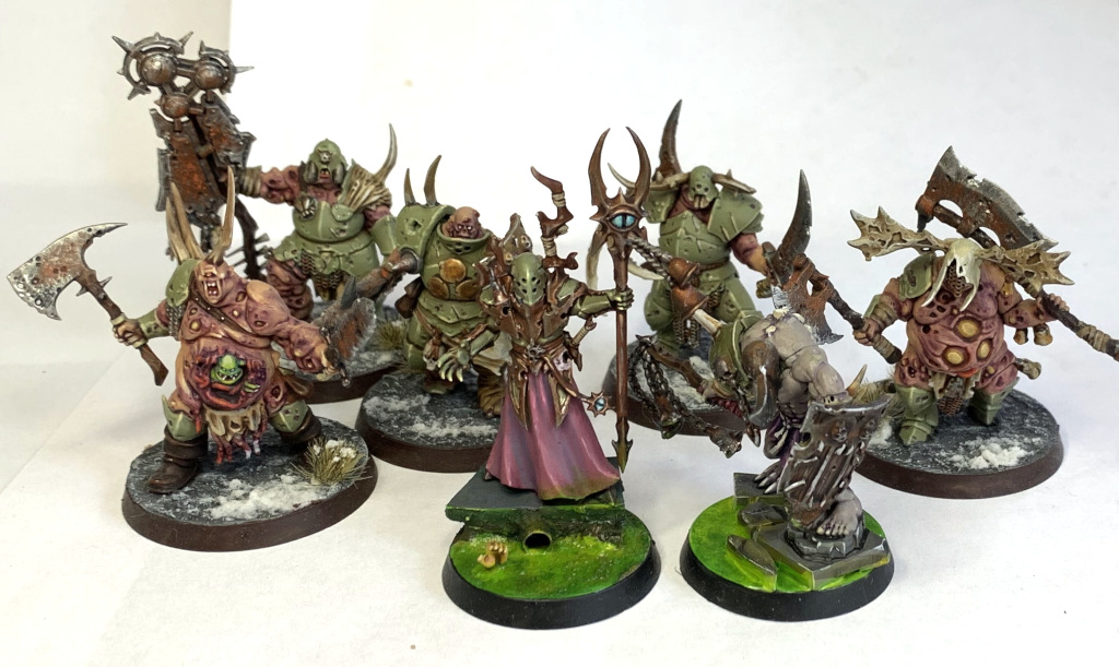 Plaguebearers, a random Champion of Nurgle and The Poxbringer.